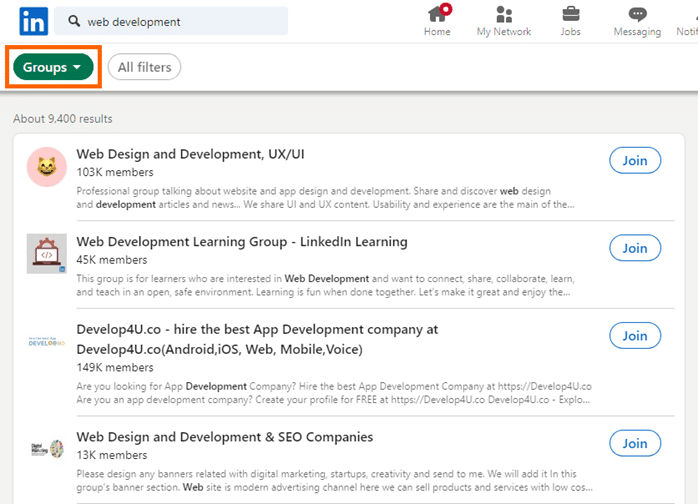 LinkedIn allows you to join up to 100 groups, and within these, you can DM 15 members a month. On joining, you’ll be able to view the full list of members.