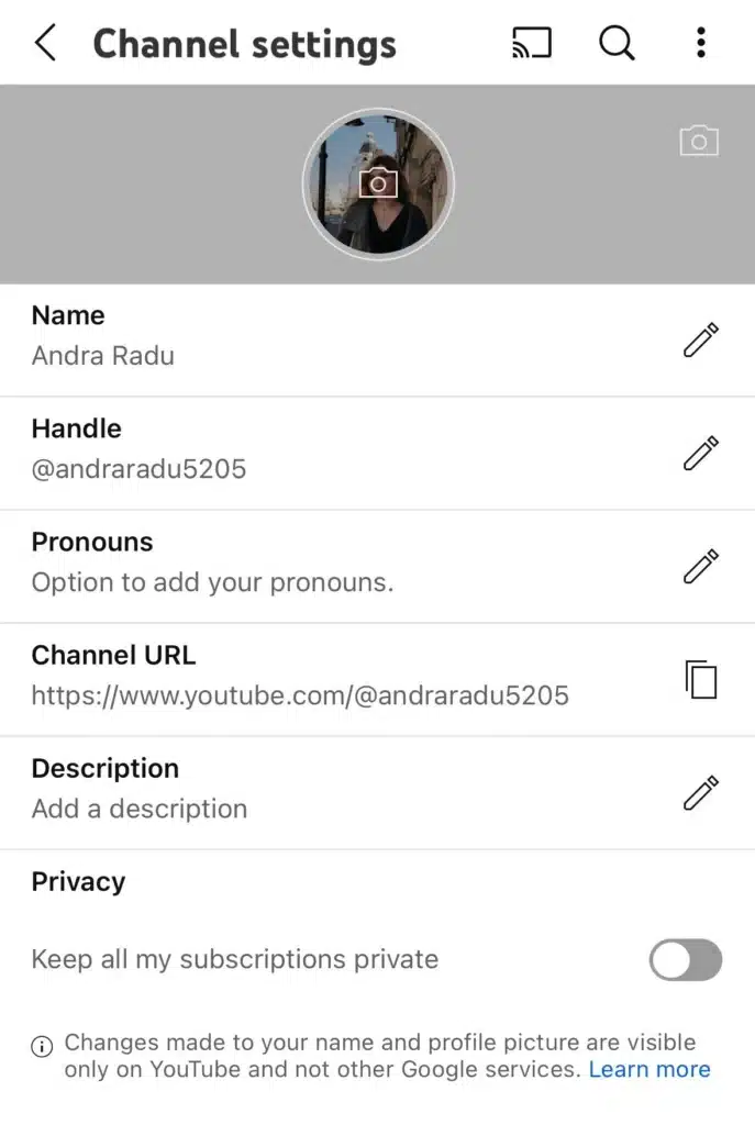 - Tap Edit channel (you’ll see a pencil icon next to your channel details).