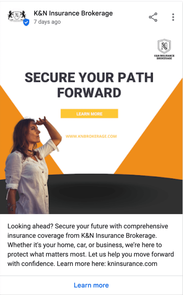 Here’s a quick example of Google post from K&N insurance, with a “Learn more” call-to-action: